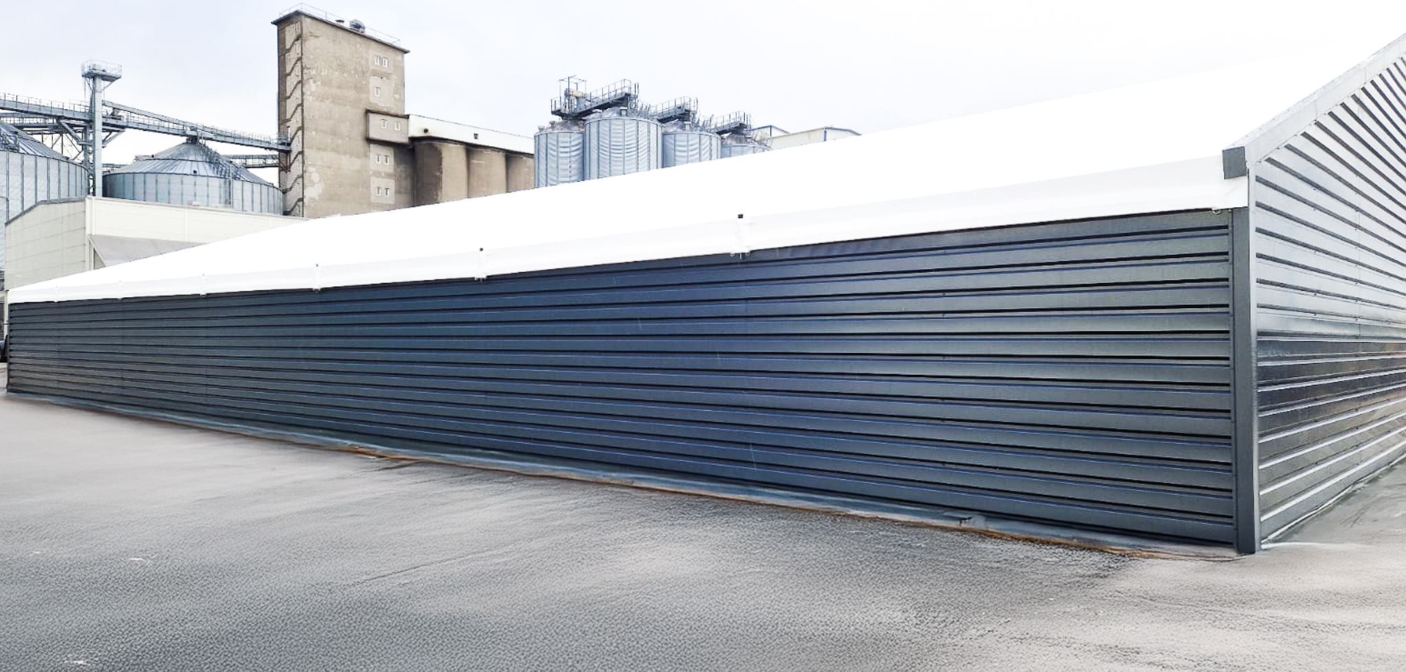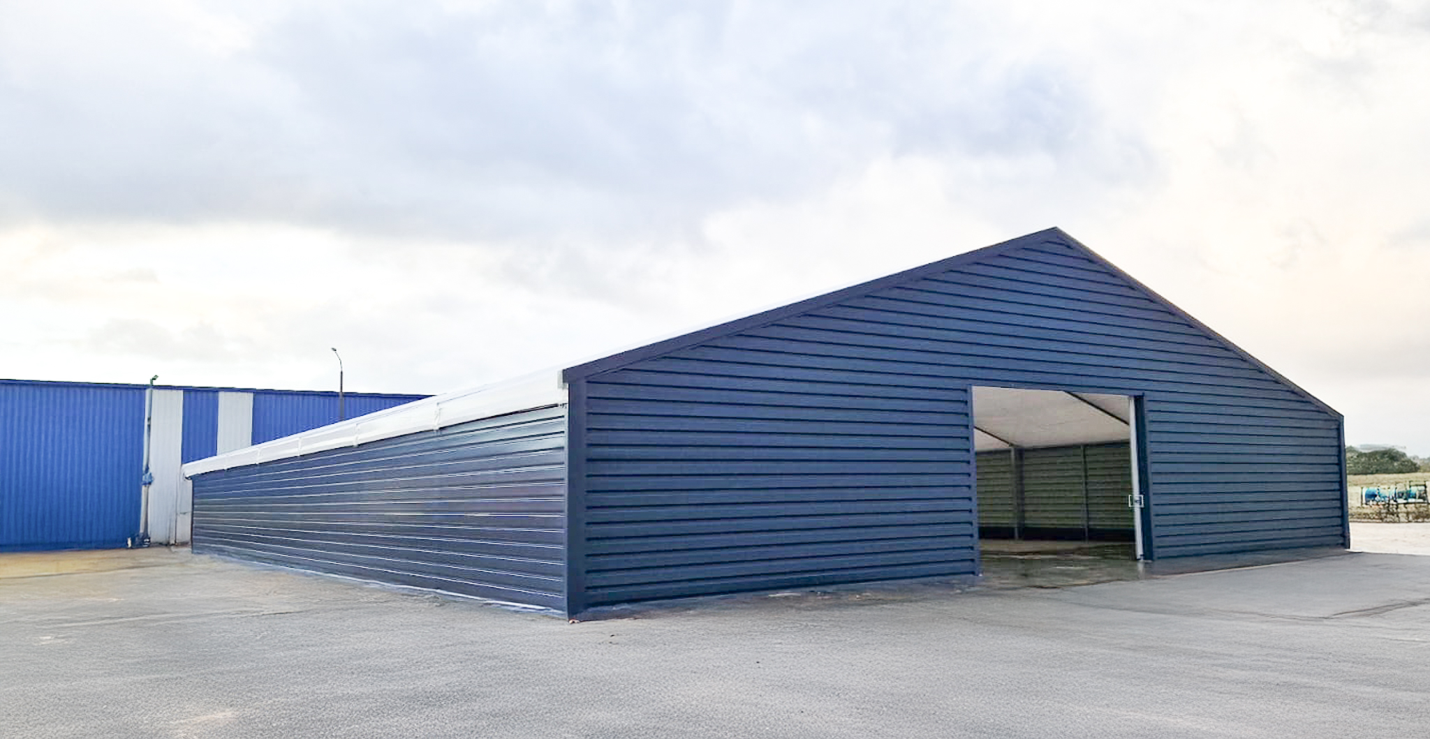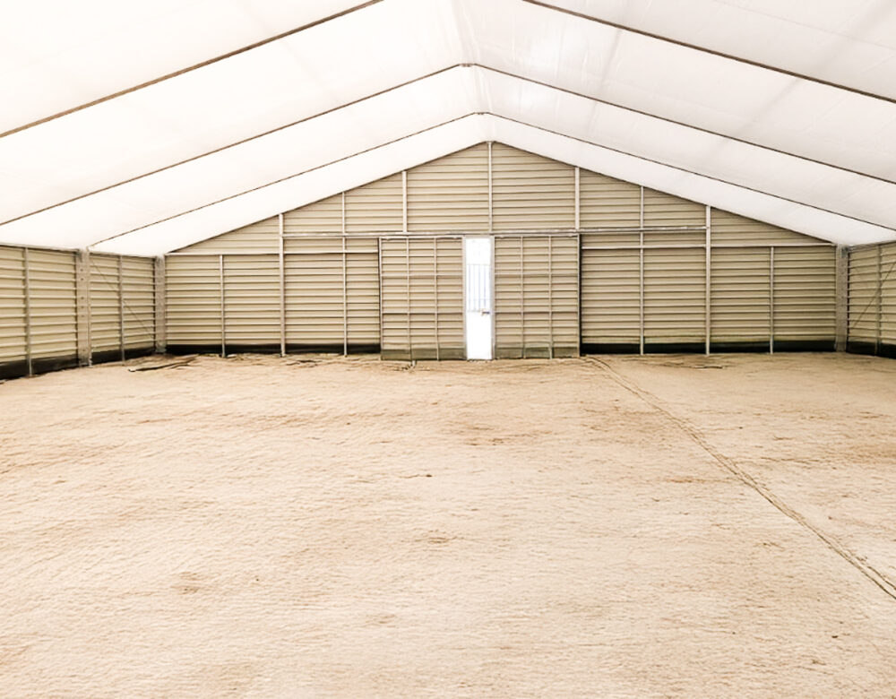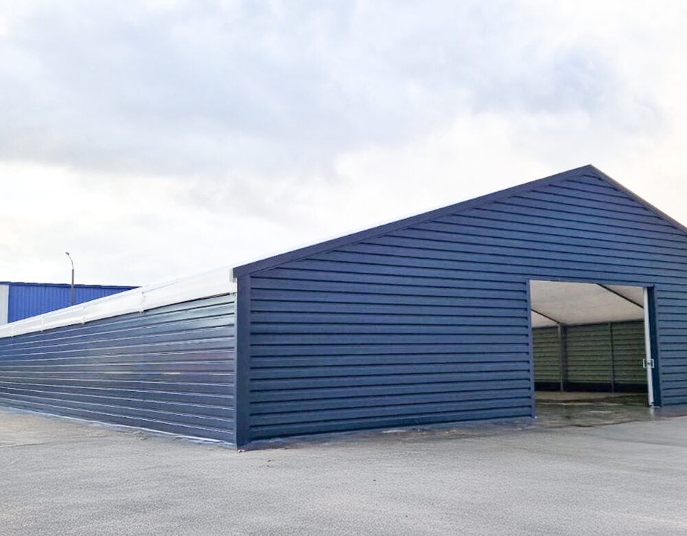 Zrealizowaliśmy halę namiotową o wymiarach 20 × 35 × 3,2 m i powierzchni 700 m², przeznaczoną do zastosowań magazynowych. Obiekt wykonano w konstrukcji modułowej, z 5 polami głównymi oraz dachem dwuspadowym o kącie nachylenia 18°. Hala została zaprojektowana z uwzględnieniem lokalnych warunków obciążeń – 90 kg/m² śniegu oraz 22 m/s wiatru – i przeznaczona do intensywnej, całorocznej eksploatacji.