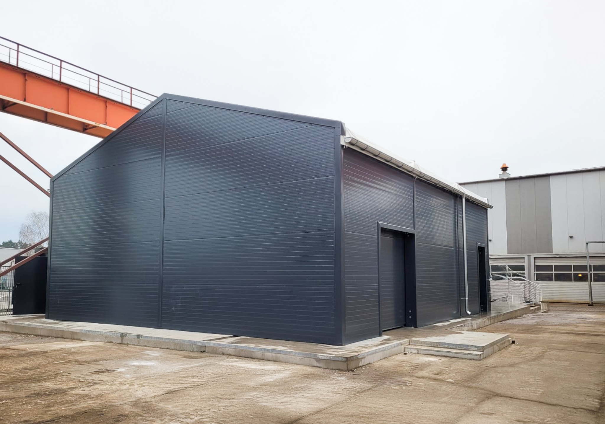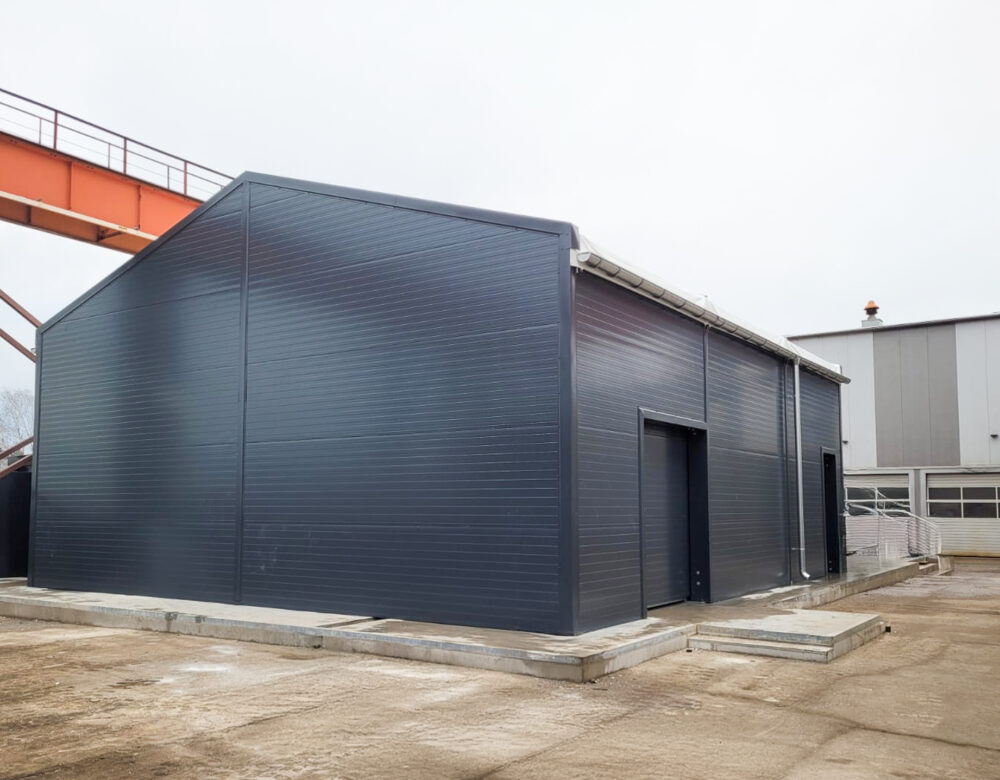 Zastosowaliśmy sprawdzoną technologię hal namiotowych Pol-Plan, projektowaną indywidualnie pod warunki lokalne. Konstrukcja została obliczona zgodnie z normami EN 13782 w zakresie obciążeń śniegiem i wiatrem. Poszycie dachu wykonano z wytrzymałej tkaniny PVC, zapewniającej szczelność i odporność na warunki atmosferyczne. Ściany dobrano pod kątem funkcji magazynowej oraz intensywnej eksploatacji. Prefabrykowane elementy konstrukcyjne oraz zoptymalizowany proces montażu pozwoliły na szybkie oddanie obiektu do użytkowania.